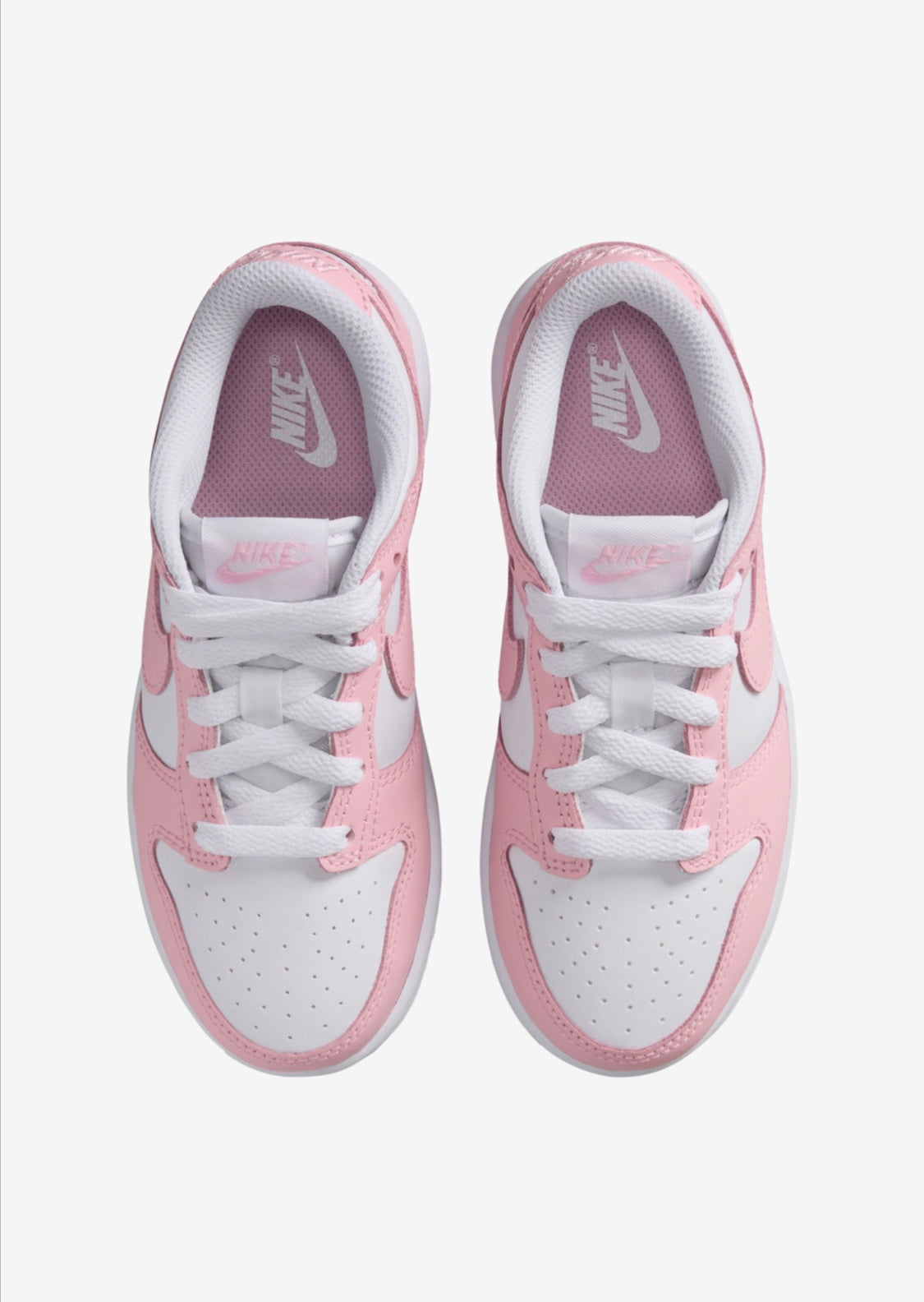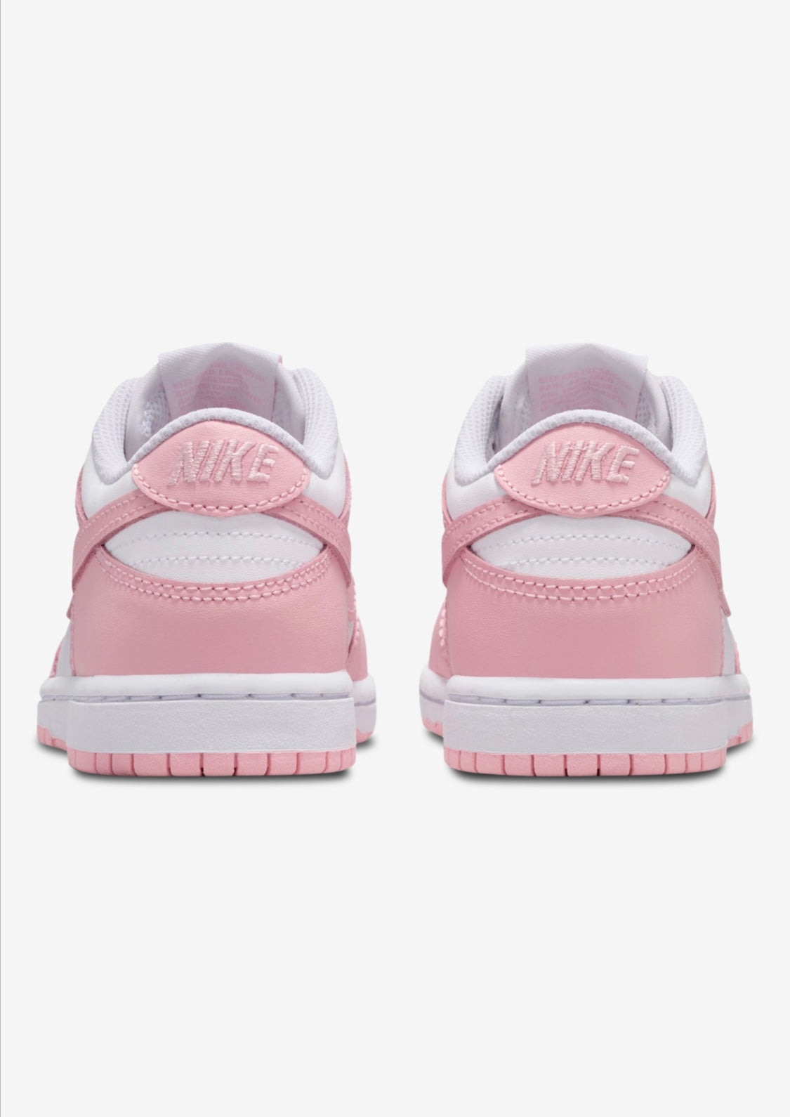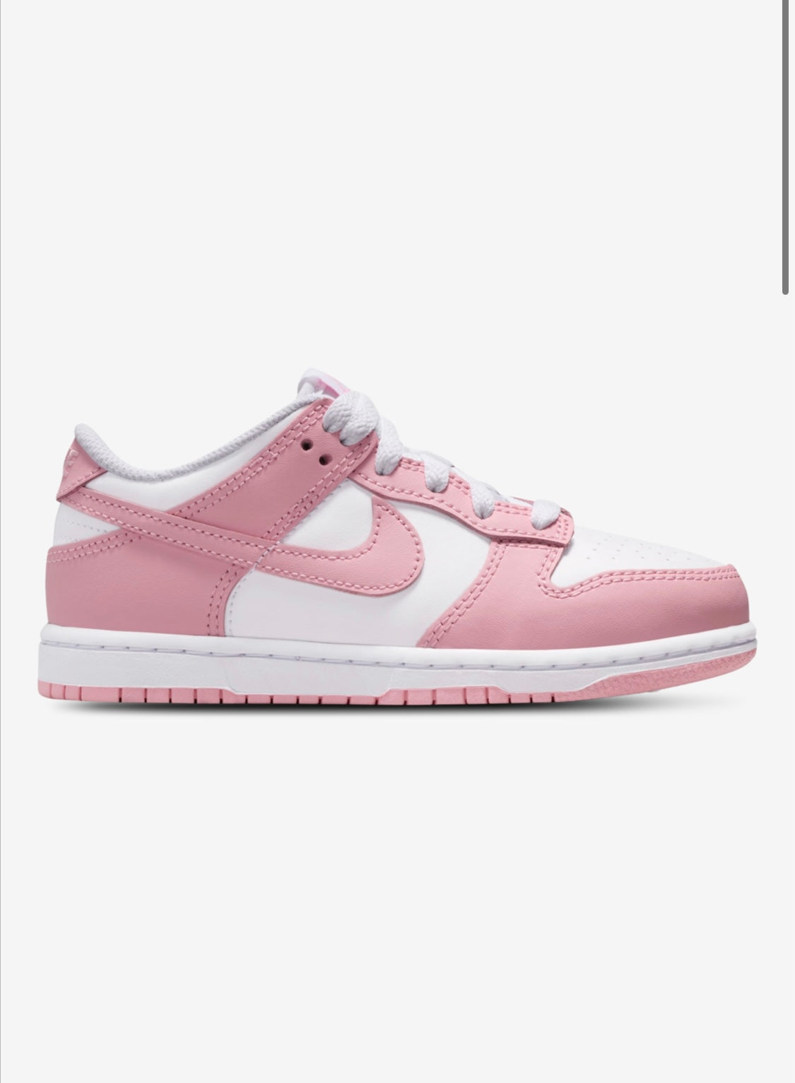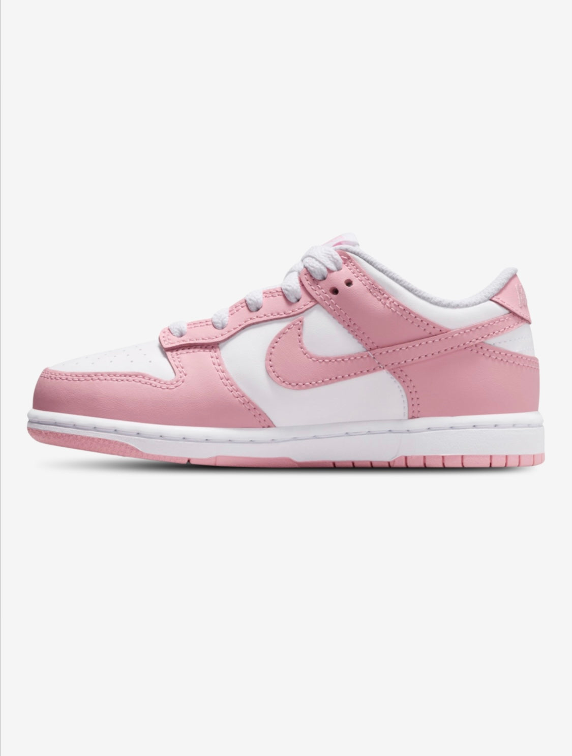The Nike Dunk Low GS “Soft Pink” delivers a fresh take on the classic Dunk silhouette with a delicate pink and white color palette. Featuring smooth all-leather uppers, these sneakers blend premium quality with a clean, feminine vibe — perfect for spring fits or everyday wear.
